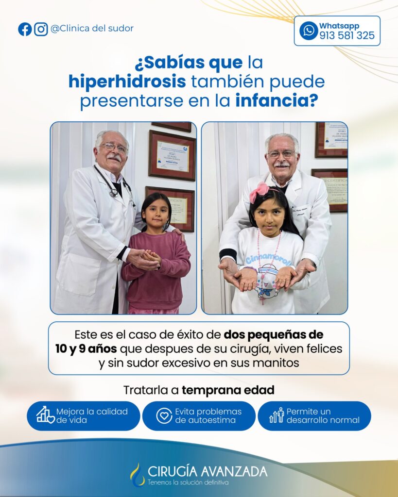 La hiperhidrosis en niños puede pasar desapercibida, pero sus efectos se sienten: ropa mojada, incomodidad al escribir, temor a dar la mano o incluso vergüenza frente a otros. En la Clínica del Sudor acompañamos a cada pequeño paciente y su familia a dar ese gran paso hacia una vida más plena y sin limitaciones.